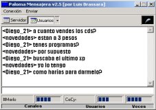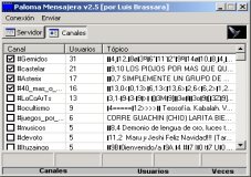 ¡Por fin está disponible! Paloma Mensajera es un útil programa para mandar masivamente mensajes a usuarios de una red IRC. Es sencillo, efectivo y rápido. Ideal para quienes quieren difundir avisos como invitaciones, publicidades, etc. y lo mejor: es totalmente gratis. |